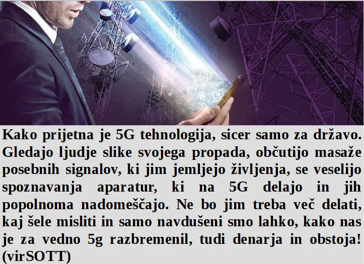 Je 5G prijetna tehnologija za državo, je pa smrtonosna za ljudstvo. Pa kaj, če izgubimo banko, važno je, da nogometna komedija teče naprej. So danes kurenti ugotovili, da so prišli na res pravi naslov, kamor bi oni najbolj sodili. Zdravstvo je na nekem izmišljenem sistemu, ki z nekdanjim zdravjem več nima zveze.