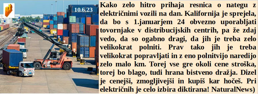 Še ne dva tedna nazaj smo imeli točo, potem poplave, danes pa že hudo sušo, narava kajne? Še malo pa sploh ne boste smeli imeti svojega avta. Električnih tovornjakov se ne bo dalo uporabljati v skladiščih. Kdor zna z lažjo zlorabljati zgodovino, ta na enak način vodi sedanjost. Bodo EU države uspeli preživeti, ko se tudi na novih sankcijah proti Rusiji niso uskladile?