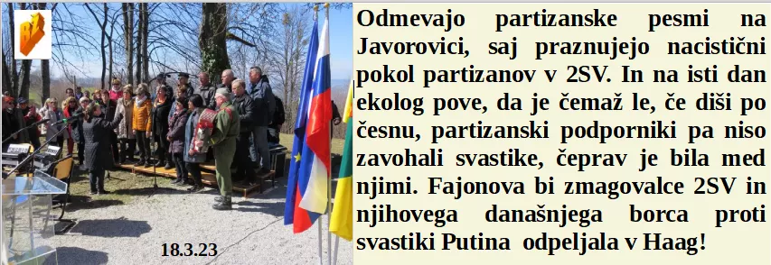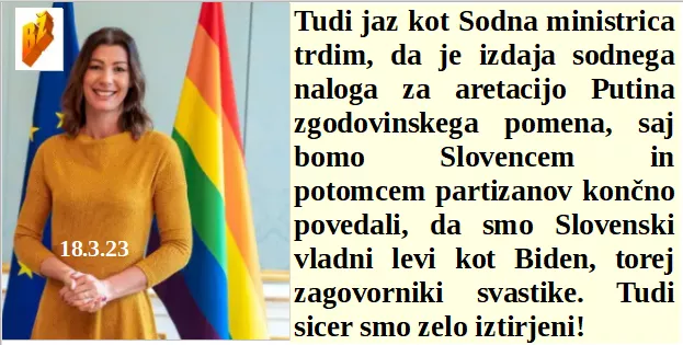 Dobili smo nagrado za čipirano osebno izkaznico, torej lahko Upravne enote zapremo. Res lepo, ko človek pomaga človeku uničevati človeka. Proslava partizanov na Javorici in razvrednotenje z ministrico. Tudi sodna LGBT ministrica je proti Putinu.