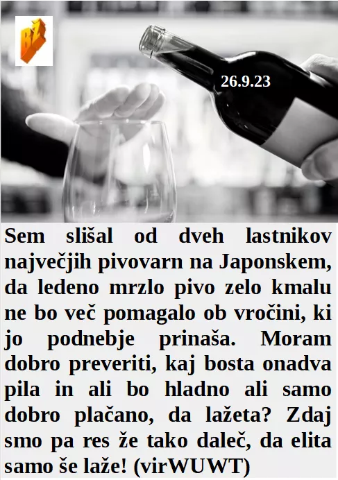 Kako žalostno, da se okoljski kriminal širi in je celo zaščiten. Kako prav mi pride ta škatla, kratica moje nove stranke. Živim za visoke cene mesta, tudi in predvsem vrtcev. Golobji poleti so bili začetek zapravljanja za letalska vladna popotovanja. Se bo na Japonskem tako segrelo, da mrzla piva ne bodo več koristila.