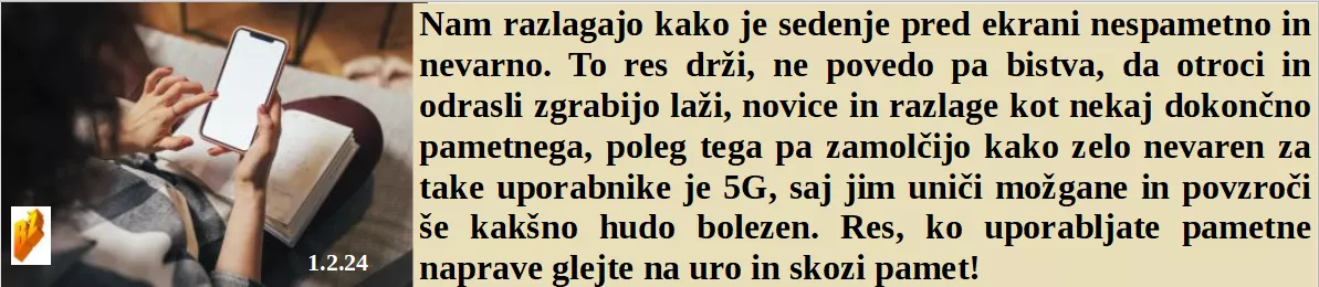 Bodo zdaj najbolj naivni še zadnje prihranke podarili državi. Prevar več ne bomo obljubljali, vse bo narejeno v tišini. Nerodno, ko ti UI omogoči iskati novo partnerico in razkrije grozoto. Sedeti pred ekranom je dvakrat nevarno - poješ laži in telo posrka sevanja. Ko si v stranki je 30m jahta nekaj normalnega!