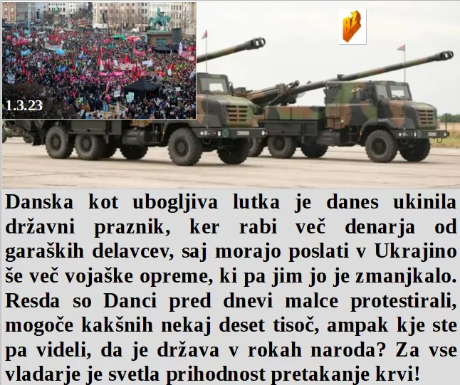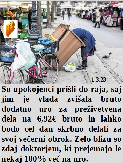 So dobili upokojenci višjo honorarno uro in kante za smeti so že na polno obdelovane. Danci ukinili praznik, ker rabijo več davka za Ukrajino. Ko je Ameriški potres rušil Sirijo, so Američani reševali nafto. Pa nehaj delati preko upokojencev zmešnjavo, saj so vsi dementni vendar naši!