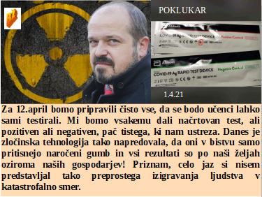 Kako se je spremenil dan norcev, včasih smo se šalili med sabo, danes se iz nas norčuje le še politika. Vendar pa kljub temu stokovnjaki za Covid trdno verjamejo Gates norcu. So 12 dni pripravljali natege, da se bodo po koncu že skoraj vsi testirali in načrtno okužili. In na dan norcev je glasen in vesel tudi vojaški šef!