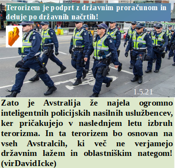 Umrlemu 1. maju so danes namenili zelo veliko pozornosti, a le delavci. Teh pa je vedno manj in Janez ima veliko dela, da jih bo še manj. Cepljenje je nezavesten pristanek na mnogo prezgodnji odhod z naše Zemlje. Medtem pa Avstralija iz državnega proračuna ureja obstoj in porast terorizma, torej na vseh, ki ne verjamejo v Covid!