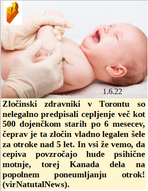 Vse je mnoga leta vnaprej načrtovano, vsak človeški zločin, zato uporabljajte svojo pamet. Po porazu v Ukrajini se v ZDA vračajo ameriški nazi borci. Kanada cepi celo 6 mesečne dojenčke. Že dolgo je znano, da sta Kovid in 5g tesno povezana zločinska ubijalca. Trudeau pa zahteva digitalno prepoznavo obraza, če hočeš na potovanje.