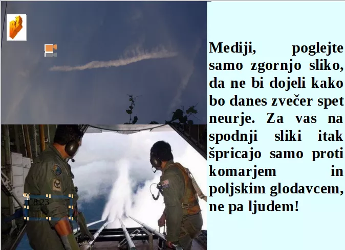 Poglejte mediji spodnjo sliko, da vidite kako se v letalih mučijo uničevati komarje. Vetrne elektrarne so ena najogabnejših prevar. Podnebno segrevanje je zgolj večerna zabava elitnih norčkov. Še nikoli ni bilo tako vroče, razen mnogokrat!