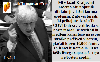 Slovenija ni več druga Švica, smo jo že prehiteli. Če hočemo zadržati svetovni nateg Korona potem moramo politično še bolj zategovati ljudstvo. Bik je simbol za barantanje z denarjem, torej kopija Slovenije. Po cepljenju boste imeli potni list in boste lahko z njim celo jedli. Anglija preko BoJo postaja najbolj zločinska diktatura!