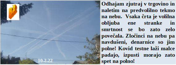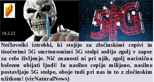 Zelo neumno je nasedati današnjim cepivom, ko pa vsa vsebujejo strupene sestavine. Iz popolnega hlapčevstva je treba na skoraj popolnega skočiti. Zločini na nebu spet prihajajo po starem in smrtonosnem sistemu. Pa je vse svoje mandate iskal demokracijo a je ni našel. Tudi pri nas zločinski sistem deluje - cepljenje ob 5G!