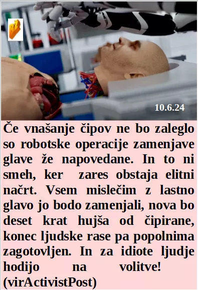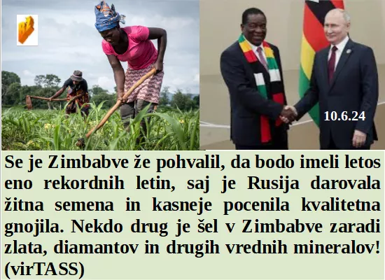 Nekam znana redna prevara! Bodo robotske operacije glave tudi čipe nadgradile? Bo babica vojaško pomembna v Bruslju? Je Rusija poklonila mnogo žitnih semen Zimbabveju. In rdeča pesa je zakon za marsikaj!