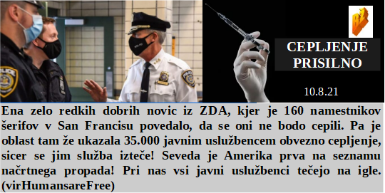 Piva Slovenci ne maramo zato je prav, da so ga s točo uničili. Ne skrivajte svojih zdravil, vas čaka zapor, če se ne boste velikokrat cepili. In preverjeni spet grozijo z gripo posebne oblike. Izmisliti si grško abecedo pomeni, da se učite pri gospodarjih leta in leta. Če greste zvečer na sprejem izjemnih olimpijcev glejte, da boste cepljeni. Edino v Ameriki 160 namestnikov šerifov zavrnilo cepljenje.