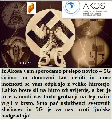 Ne bomo menda kot vlada podpirali urgentne medicine za Slovenčke? Da si del elite moraš podpirati depopulacijo in ustvarjanje globalne krize na vseh področjih. Smo navdušeni kako širimo 5G po Sloveniji, zdaj bodo bolnišnice povsem nedosegljive. Vsaj nekdo z resnico na dan - cepivo je namenjeno popolni sterilnosti generacije.Smo se zabavali v Hollywoodu in peli pesmice o obisku Lune.