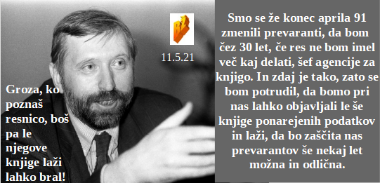 Mnogi starejši, ki danes nasedajo cepljenju, bi se morali spomniti vsaj enakega natega leta 1976. Ko si enkrat v umazani visoki družbi, potem so bedarije sestavni del tvojega življenja. Ker je 30 let potvarjal resnico je zares pravi človek, da potvarja še tiskanje knjig. Bežite Slovenci, vaša prelepa domovina ima epidemiološke teroriste.
