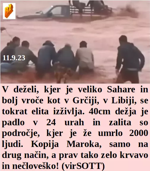 V puščavski Libiji je elita s poplavami uničila na tisoče življenj. Ni važno, da EUropa propada, imamo pa dovolj za Ukrajino. Imate hude ofenzive, ste bili včeraj kar nekaj korakov nazaj. Za uničenje sveta je bilo treba najprej pobiti lastne ljudi. Digitalno zdravstvo je zelo napredno, grobarji so navdušeni. In sredi mesta so izkopali luknjo za dostop do skrivnega mesta oblastnika.