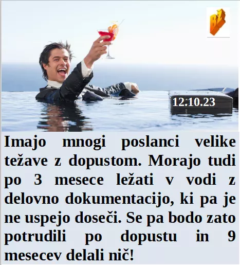 Samo še korporacijske igre so v dopolnilnem zdravstvenem zavarovanju. Da se narod stara je logično, saj pri mladostnikih ni več zaželjeno delati otrok. Lutke delajo vse naročeno, tudi v boj proti stari Jugi gredo. Kako malo dopusta imajo poslanci in še manj dela po dopustu!