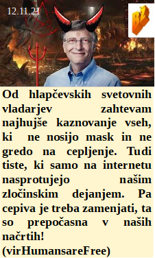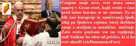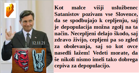 Slovenska pametna mesta že delujejo in grobarji so navdušeni nad prihodnostjo svojih poslov. So prisilili Kurza, da je odstopil, ker je njegova zamenjava totalno prodana duša farmacevtom. Kot uslužbenec satanistov odločno zagovarjam njihovo cepljenje naroda. Je Papež ponosno povedal, kako podpirajo v Vatikanu množično genocidno cepljenje. Eden od najvišjih hudičev na svetu zahteva od vseh vladarjev, da prisilijo svoje ljudstvo na vse genocidne poteze, od maske do cepljenja. Po cepljenju pa se že vsak šesti slovenski par srečuje z neplodnostjo. Ker je Ameriška FDA ugotovila popolno neustreznost testov so ponudili Sloveniji brezplačno dostavo zavrženih testov.