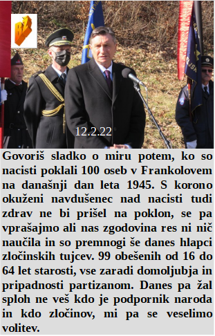 Govoriš sladko o pobitih na Frankolovem, pa hkrati tudi gobčen na mnogih oboževanjih morilcev le teh! Ko eden misli, da svoje premoženje prodaja Madžaru! Stvari se sicer malce spreminjajo, a na Hrvaškem še ni volitev. Bodo farmacevti končno začeli plačevati svoje krvave cepilne zločine?