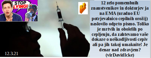 Kako to, da farmacevtskim korporacijam nikakor ne uspe dokazati koristnost cepiv brez smrtnih izidov? Kako gre nekaterim na živce, ko se po cepljenju ne moreš premikati. Ste vedeli, da je tudi smrt nekaj povsem naravnega po cepljenju? Bila je elitno urejena, zato jo je zdravnik po cepljenju vseeno sprejel. Morate vedeti, da je korupcija najslajša v času strupenih obdobij!