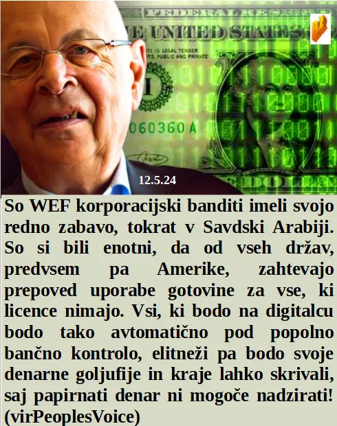 Digitalno vino vendar rabimo k digitalnemu mesu! Satanizem na odru, mrtvi doktorji v Gazi. Ukrajina ne rabi delavcev, le še nujne vojake. In WEF pokojnega zahteva prepoved uporabe gotovine. Nekajkrat dvigniti nekaj težkega pomaga pri prekrvavitvi!