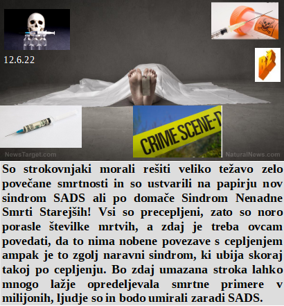 In praviš, da je bilo tako barvito v šoli? Zdaj tudi uradno vemo ime novega virusa po cepljenju - Sindrom nenandne smrti starejših. Ovce pač nikamor ne smejo, tiste prehranske in one človeške. Mathausen na Ljubelju je bila tragedija in nacistična grozota, pa ga že primerjajo z nacistično Ukrajino.