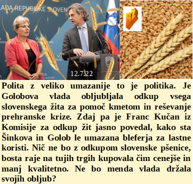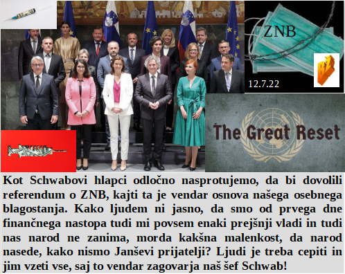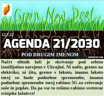 Zeleni posel je le ponarejen naslov Agenda 2030. Ne bomo dovolili referenduma ZNB, nam je tudi Schwab prepovedal. Odkupili bomo vse slovensko žito razen nič od njega. Bomo kazen plačali, ker smo prepozno uvedli obvezno morilsko 5G storitev