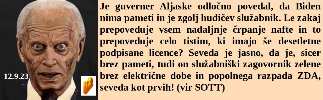 Res je nosorog ubil skrbnico, a v svojem zaporu. Celo guverner Aljaske je povedal, kako neumen je Biden. Je sicer šel na morske počitnice, a se je z Luksemburgom zmotil. So spet zastrupljali na veliko, ker je odgovorni odsoten. In G20 je sklenil, da je treba ves svet spremeniti v digitalno nevarno bedarijo. In dan se je spet zaključil z NWO vajami!