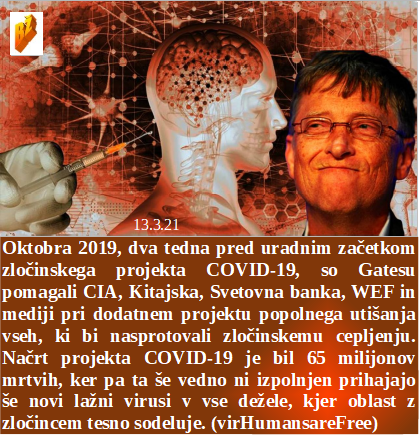 Če sprostimo karanteno nam lahko zdravstvo propade, saj nam preveč prinese. Če ima država predrage delavce morajo tovarne zapirati. Resnice o resnici do ljudstva oblast ne bo nikoli brala. Že leta 2019 so mnoge države pomagale Gatesu, da je lahko začel projekt smrtonosno cepljenje