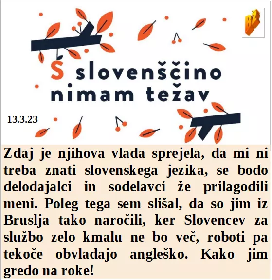 Kako zabavne so laži, zato večina resnice noče slišati. Možganski teden, ko večini jezik ne dela nikoli preko lastnih možganov. Uboga aktivistka, je po 5 letih morala umakniti svoje plačano laganje. Tujcem ne bo treba znati slovenskega jezika, roboti ga že zdaj ne znajo.