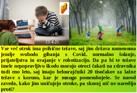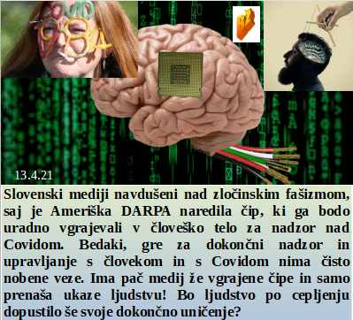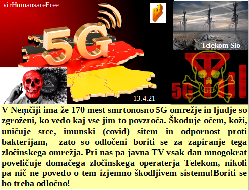 Čip so naredili, samo v možgane ga morajo še vstaviti in konec je človeštva. Otrokom jemati svobodo gibanja je namerno uničevanje otrok. Medtem pa vojaške vaje prinašajo sneg, pa kakšen dan mraza pa spet sonce. Velik del sveta sovraži tudi AstraZeneco, pri nas pa politika navdušena nad njim. V Nemčiji pa 170 mest že trpi smrtonosni 5G sistem!