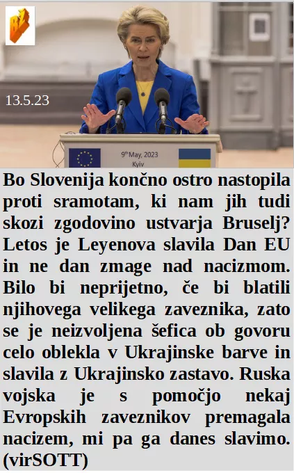 Praznujejo dan osvoboditve, a zemlja še danes ni njihova. Ker šefica EU ni hotela blatiti njenih zaveznikov so danes imeli v Bruslju dan EU in ne več Dan zmage. Ko sta lažnemu Marksistu vzor Leyenova in Stoltenberg. Je danes pomembno kaj prebereš in poveš na pametnem telefonu in ne kako znaš razmišljati.