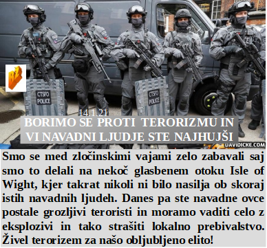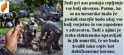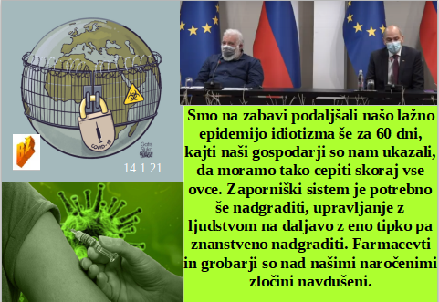 Farmacevtsko navdušenje nad slovensko vlado. V Sloveniji imamo tudi skoraj 2 milijona teroristov. Kacin pa obžaluje, ker je svoje enako prevarantsko obnašanje prenesel tudi na Janeza. Se policija med stavko usposablja za izvajanje nasilnega cepljenja? Vladna prevaranta pa zaskrbljena, ker starši negodujejo terorizmu nad otroki!