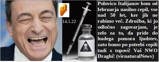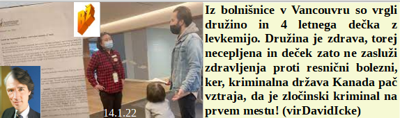 Tudi pri nas obstajajo zdravniki s človeško moralo. V Kanadi vrgli iz bolnišnice 4 letnega bolnega dečka, ker družina ni cepljena. Nekdanji komunisti odločno za cepljenje. Italijanski novi Mussolini bo od febrauarja naprej pobijal vse Italijane nad 50 let! Cepivo proti kovidu je tako dobro, da se populacija zelo zmanjšuje. Škoda, da množice verjamejo tako 5G kot smrtonosnim cepivom!