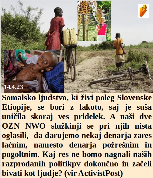 Kako pomembno je, da danes sami razmišljamo o zdravju in ne farmacevti! Somalci živijo v lakoti, a to ni razlog za obisk in pomoč. Bodo zdaj streljali medvede kot so 30 let naša podjetja. Etiopija je gospodarsko povsem podobna Sloveniji, tudi oni imajo slone.