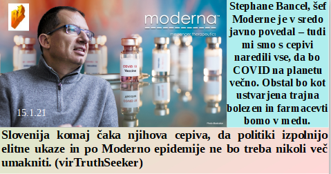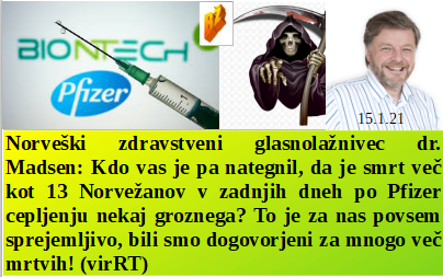 V Moderni zagotavljamo, da bo COVID trajen. Če je Ihanska farma propadla mora tudi ljudstvo preko igel. Kdo vas je pa nategnil, da nas je samo 13 umrlo po cepljenju na Norveškem? Če se ti igraš Janezovo igro se igraj še mojo. Policijska država pa ne sme propasti, ker potem tudi diktatorjev ne bi bilo.