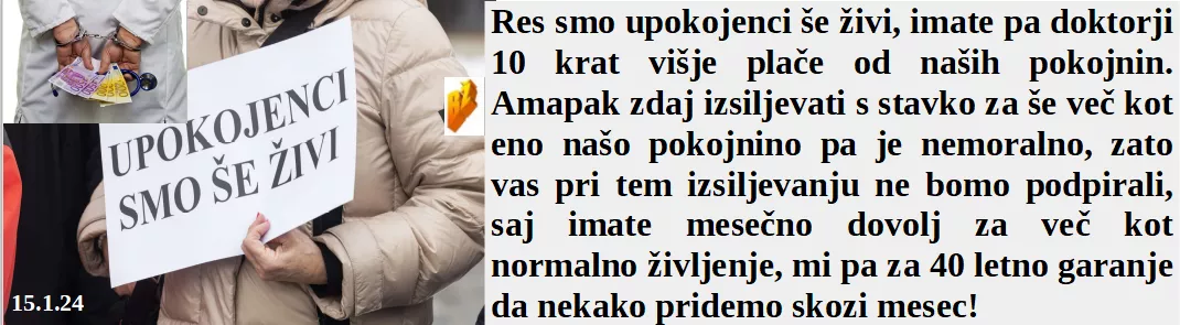 Imate 10x višje plače od pokojnin nas upokojencev, pa vam je premalo. Ko Satanisti porušijo 50% Gaze. Je Zelenski podpisal hudo pomoč Angležem. Govorijo proti Rusiji, kupujejo pa njihovo fosilno gorivo. Ali sodniki stavkajo za denar in izsiljujejo z resnico?