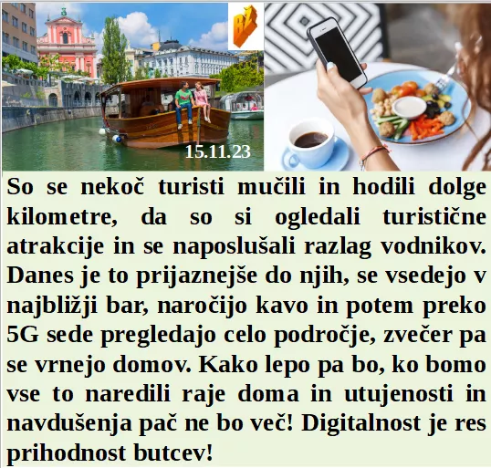 Včasih so turisti potovali po Ljubljani, danes se samo vsedejo v lokal in gledajo telefon. Bodo kriminalci in tudi vi v digitalnem zaporu. Socialna država redno skrbi za vse, ki imajo skoraj nič dohodka, jih redno opazuje v tišini in brez dejanj. Čez lužo že pripravljajo iztrebljenje naravnega mesa!