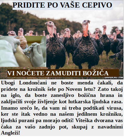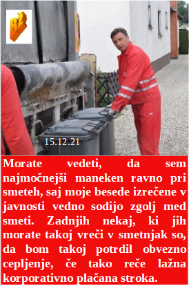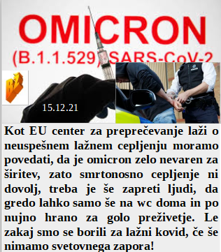 Ker je omikron zelo nevaren smo se odločili, da še množično dodatno cepimo in zapiramo državo. Boste krožnik naše dobrote za Novo leto? Potem takoj tecite v vrsto za smrtonosno cepljenje, kot mi. Moja največja moč so smeti in popravljanje lepote. Tudi mladoletniki morajo izpolniti načrte zločinske zdravstveno farmacevtske mafije!