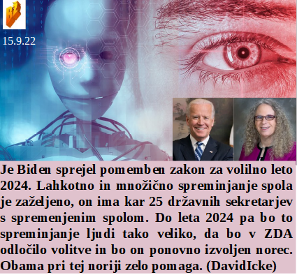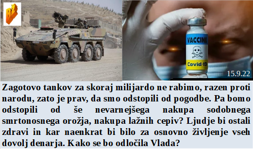 Prav je, da smo odstopili od tankovskega orožja, pa bomo tudi od hujšega orožja? Zdaj je nateg cepljenja na tistih nad 60, ki morajo oditi. Je bil 3x cepljen in pričakovano umrl, pa se čez nekaj ur začne dreti. Da bi zmagal na volitvah 2024 je Biden sprejel skoraj obvezno spreminjanje spola. Politika je nadgradnja volka, ubijeŠ 20 milijonov perutnine za svojo večerjo.