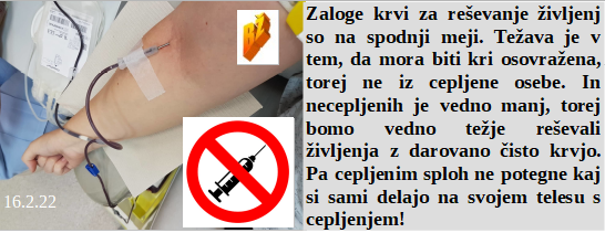 Dovolj dobro nategniti vojske da uskladiš čas svojega dopusta. Danes zdravstveno osebje stavka, le doktorjev ne bo, ker si nočejo uničiti sanjske plače za nič dela! Ker darovana kri za reševanje življenj ni zaželjena iz cepljenih je jasno, da jo močno primanjkuje. Tudi otrok ne rabimo več, zato jih cepimo, kakor smo umaknili socializem, da ni več uničeval bogatih.
