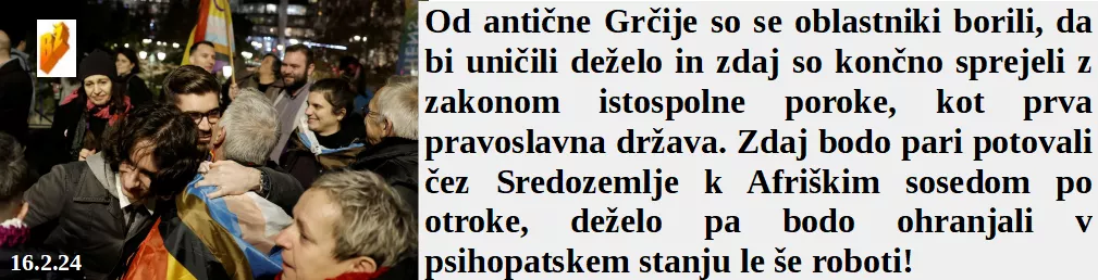 Šest jih v Sloveniji že kašlja, pozimi in epidemija je tu. So Grške oblasti že dolgo uničevale deželo, zdaj pa so še istospolne pare legalizirali. Ta veseli del upokojencev je stavkal od veselja, ker bo pokojnina višja za skoraj 1%. Kavica pa je bila zastonj do prejema višje pokojnine.