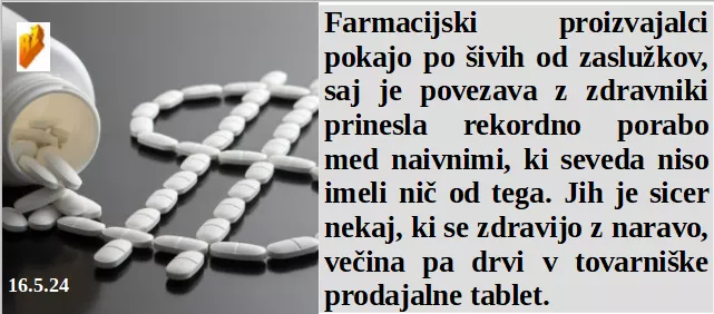 So zdravniki in farmacevti obsedeni s tabletkami in iglami. Ribe lovili v nekoč našem morju, zdaj kaznovani. Je Slovenija odvisna od elite in ne od naroda. Je tudi Svetovna banka naredila doktorat iz krav!