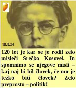 Pred 120 leti se je rodil misleči Slovenec našega ponosa. Kdo še verjame, da bodo belosrajčniki delali dokler ni zvišanja plač? Humanitarne pomoči ta mesec za Slovence ni, je šel denar za Ukrajino. In danes bodo glasni soavtorji slovenske pogube!