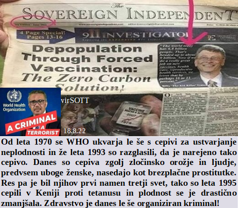 Smo z Golobom že dobro pripravljeni na jesenski kovid terorizem. WHO je že od leta 1970 namenjen zgolj zmanjšanju števila prebivalcev tega planeta. Kongo je zlat, zato si ga tolikokrat in tako krvavo delijo. So nas obvestili kdaj moramo špricati iz letal, odprte hiše so raj za nas. Bolnišnice upravljamo prav preko lažnega kovida!