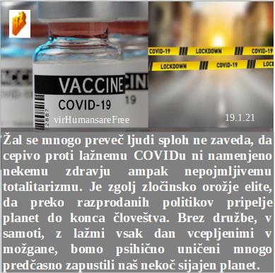 Sva lepo prepeljala Slovence žejne preko najinih prirejenih kreganj, kajne? Da milijonarji prejmejo socialno pomoč morajo državi predložiti prošnjo. Depopulacijsko cepljenje pa izvaja tudi Izrael. Naš načrt je 1.6 milijona cepljenih Slovencev, da bo konec države. Cepiva so itak namenjena za vzpostavitev prave malo naseljene diktature.