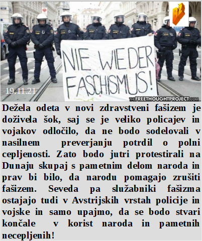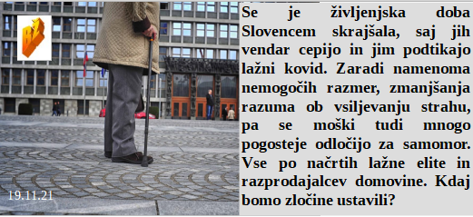 Slovenija ima ogromno zadolženega denarja, zato milijoni za letalo, s katerim bodo politiki pobegnili ni problem. Nekateri pa si celo zdrav zajtrk privoščijo, ker v špehu ne vidijo ničesar. Podtikanje covida je tudi pri starih slovencih razlog, da morajo prezgodaj v grob. So pa v fašistični Avstriji celo nekateri policaji zločinu obrnili hrbet.