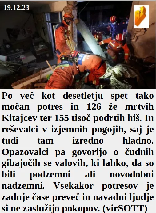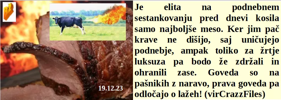 Očitno zelena elektrika ne dela, zato svet rabi premog. Rešili smo 99% vprašanj o plačah, ostane le še 90%. Ker krave uničujejo podnebje, je treba njihovo meso postreči eliti. Na Kitajskem spet močan potres in ogromna škoda. Ukrajina še vedno zelo na grobo z novimi vojaki!