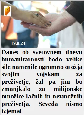Kar smo dežele razprodali mora večina ostati naši eliti. Afrika ne sme zaživeti, zato elita pazi nanjo. Ob dnevu humanitarnosti bo šel denar za orožja, ne lačne. So Ukrajinski vojaki tudi po več dni lačni. Je Italijanski novinar ponosno intervjujal naci vojaka!