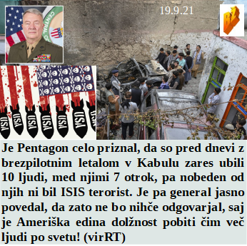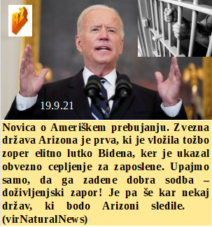 In cepivo za kovid obstaja samo zato, da vzdržuje diktature. So ZDA z brezpilotnimi letali ubijale v Kabulu po uradnem odhodu od tam. So v nedeljo naši teroristi odprli na desetine klavniških cepilnih mest. Policijski ministrski šef udarno nad sindikate svoje policije, ker se nočejo cepiti. Arizona pa je prva vložila tožbo proti Bidnu zaradi ukaza o obveznem cepljenju zaposlenih.