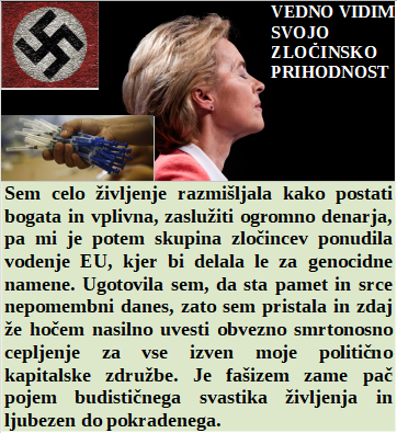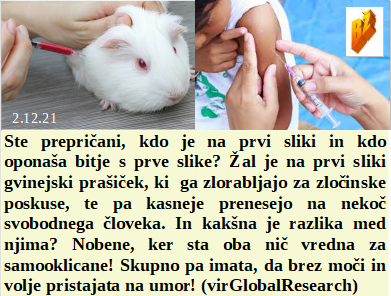 So še sodišča, ki delajo po zaklonu in vesti, kot Belgijsko Valonsko. Zato pa šefi EU razmišljajo zgolj o zločinih nad Evropejci. Nas elita prefinjeno pelje do popolnega nadzora in robotizacije. Izživljanje nad živalmi prehaja na polno na človeka. Naša hlapčevska dežela je naredila vse, da bo varna za obstoj kovid laži!
