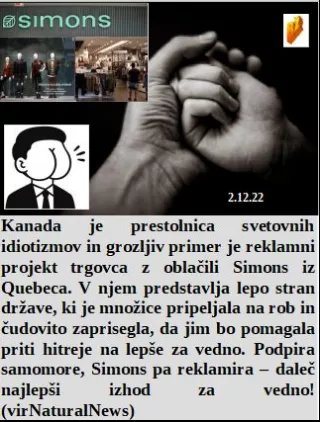 Mi politiki res ne zanmo narodu povedati, da je glas prevarantom samo želja politikov. Vložite denar v digitalno valuto, tam izgine in spet ste brez vsega. Kanadski trgovec z oblačili reklamira samomore. Ker upokojenci večinoma nimajo za preživljanje pomeni, da je vlada sposobna in priljubljena. Že desetletja je Fauci mojster prevar in ubojev. Brazilija protestira, elita pripelje dež in konec je!