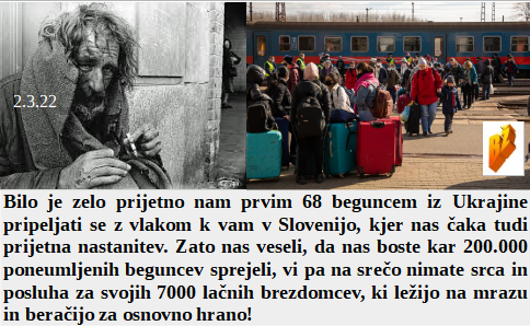 Imamo tako sodobno tehnologijo, čeprav zlobno nečloveško. Tudi hrano že dolgo izdelujemo na biološki strupeni način. Umetni Ukrajinski begunci pred našimi resničnimi reveži! In zdaj vsi vedo, da so biološki laboratoriji na meji z Rusijo vzrok za vojaške spopade.